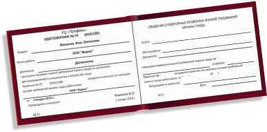 Удостоверение образца, утвержденного Министерством труда с внесением в ФРДО.